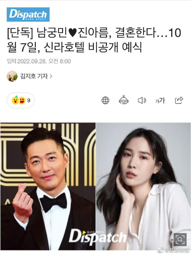 据悉,南宫珉和陈雅凛2015年因拍摄电影结缘。2021年南宫珉在《MBC演艺大赏》发表获奖感言时曾申请告白:“雅凛,谢谢你一直在我身边,我爱你。”7年恋爱长跑,如今终于修成正果。