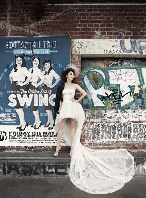 10日徐若瑄唯美婚纱照曝光。Vivian身穿由好友贾永婕送赠,近百万订制的婚纱,一件缀满蕾丝充满高贵古典美,另一件则是带点摇滚味,相当有特色。 而取景方面就由Fremantle假日市集涂鸦牆、波浪岩、金黄麦田区到天鹅湖,两人脸上都挂住幸福满泻的笑容。
