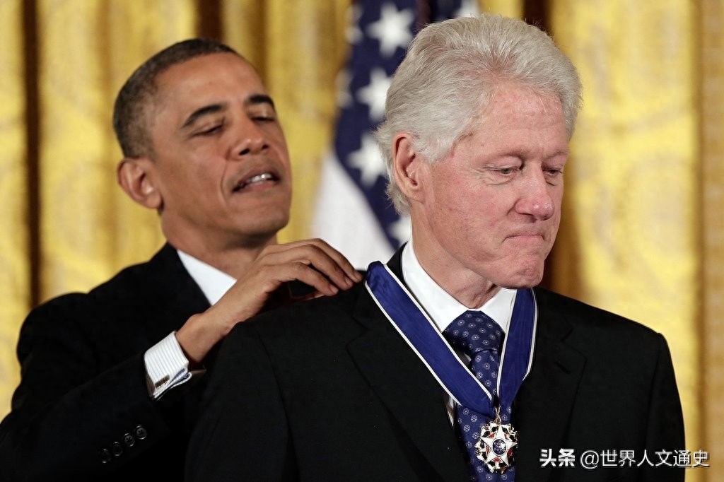 (奥巴马为克林顿颁发勋章)