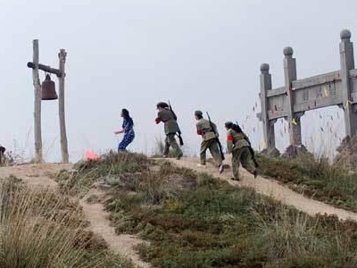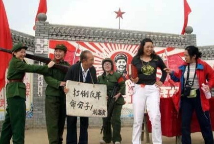 在“文革时的农村”场景区,记者看到在这里观光的一些同行游客们模拟起“文革”时期的批斗场面,虽然遭“挨斗”的一位老同志脖子上挂着牌子,但是站在台上仍然开心地笑个不停。真是时过境迁,当年严肃的阶级斗争如今已被演化为人们娱乐的游戏,看来,现代化时代的飞跃早已将历史的某些尘埃远远地甩去了。