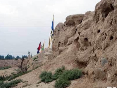 镇北堡影视城所在的这两座一南一北的古堡均坐西朝东。紧邻沿山公路东侧的老堡已被风蚀殆尽,仅存残墙断垣,形制尚存。城东西长175米,南北宽160米。向北穿过城中黄土路,是老堡瓮城遗址。这里现为影视城先建的“明城”。