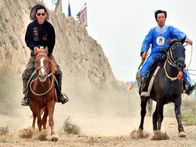 车友在影视城内跃马疾驰(摄影:冯赣勇)