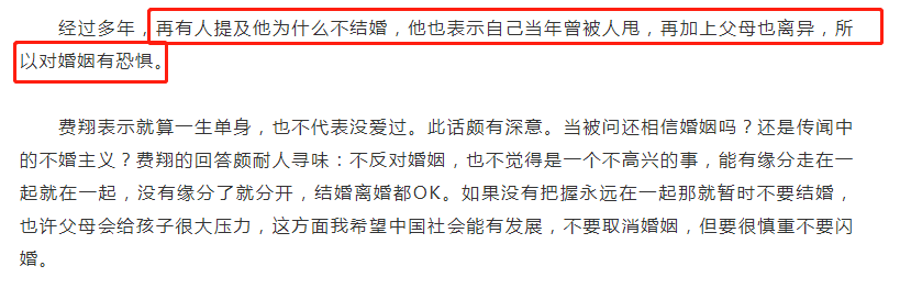 费翔坦言:"当年被人甩,再加上父母也离异,所以才会对婚姻有恐惧。"