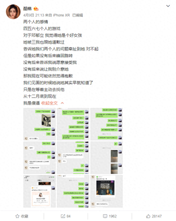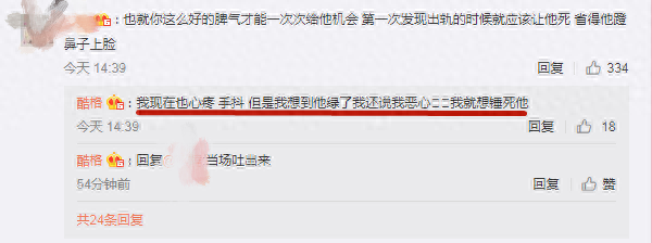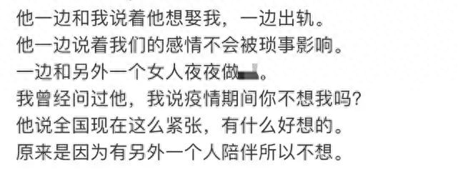 酷格是这么爆料的:“他一边和我说着他想娶我,一边出轨。一边说着我们的感情不会被琐事影响,一边和另一个女人夜夜做X”。这也太渣了吧!