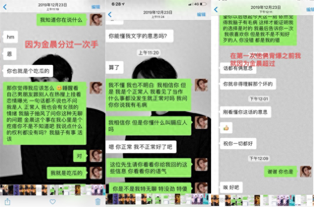 酷格在聊天中提到金晨的日期,正是金晨和张超被狗仔拍到传出绯闻的时间。此外,酷格还称在张超和金晨传绯闻上热搜之前,她就和张超因为金晨吵过一次。这次又因为金晨争吵,两人就分手了,之后,酷格心软,两人又复合了。