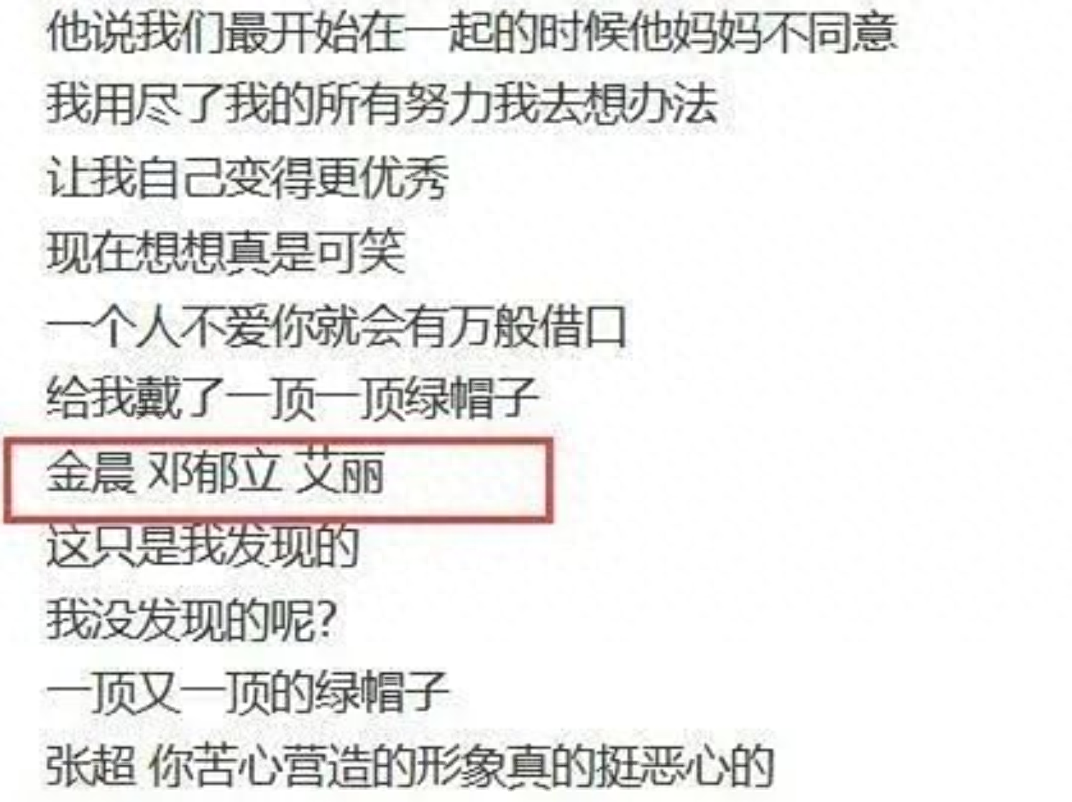 果不其然,在张超否认出轨后,酷格又开始爆料了,在放出的聊天记录中,再次提到了金晨和邓郁立。