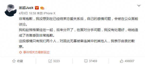 昨天稍晚些时候,张超终于回应了此事。张超在回应中承认了和酷格交往过,目前已经结束恋爱关系,还说这段感情只有他们两个人,这是否认多次出轨?