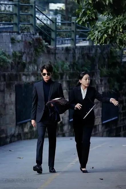 他一身黑西装,一副黑墨镜,就是一本正经的高冷霸总,上流人士,温文尔雅,彬彬有礼,酷到走路带风,拽到没朋友!