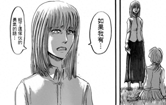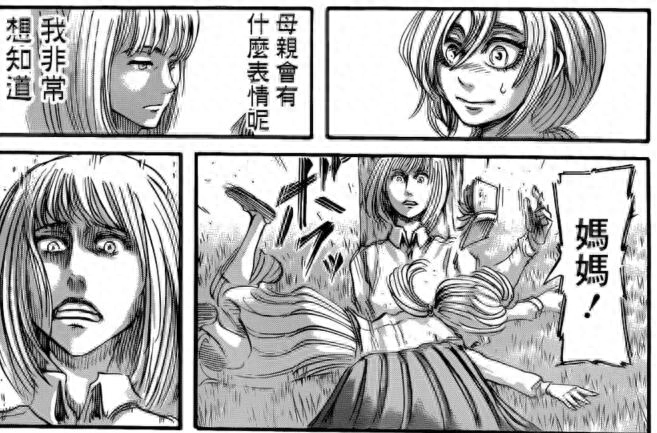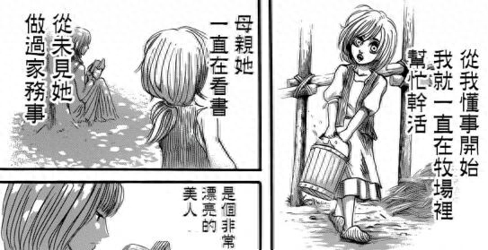 不过,早在52话,当希斯特莉亚向众人坦诚自己的过去,她对于母亲的描述,则是:“从未见她做过家务事”,由此可见,不做家务事怎可能穿女仆装?名为“阿尔玛”的佣人,身份上便不可能与希妈本人重合,而希妈名字的解密,也将重新回到原点。