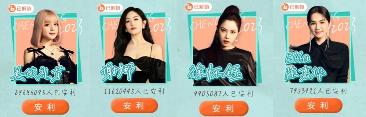 《浪姐4》最新人气排名榜:谢娜排名第二,徐怀钰排名第三