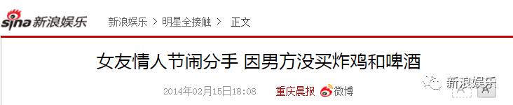 后来出了两个可气又可笑的社会新闻,一个是女友因男友没买炸鸡和啤酒而闹分手;