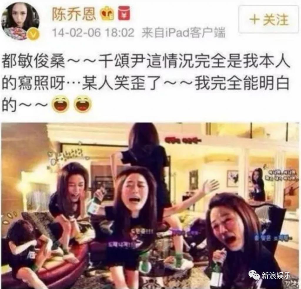 陈乔恩发微博表示自己和千颂伊很像;