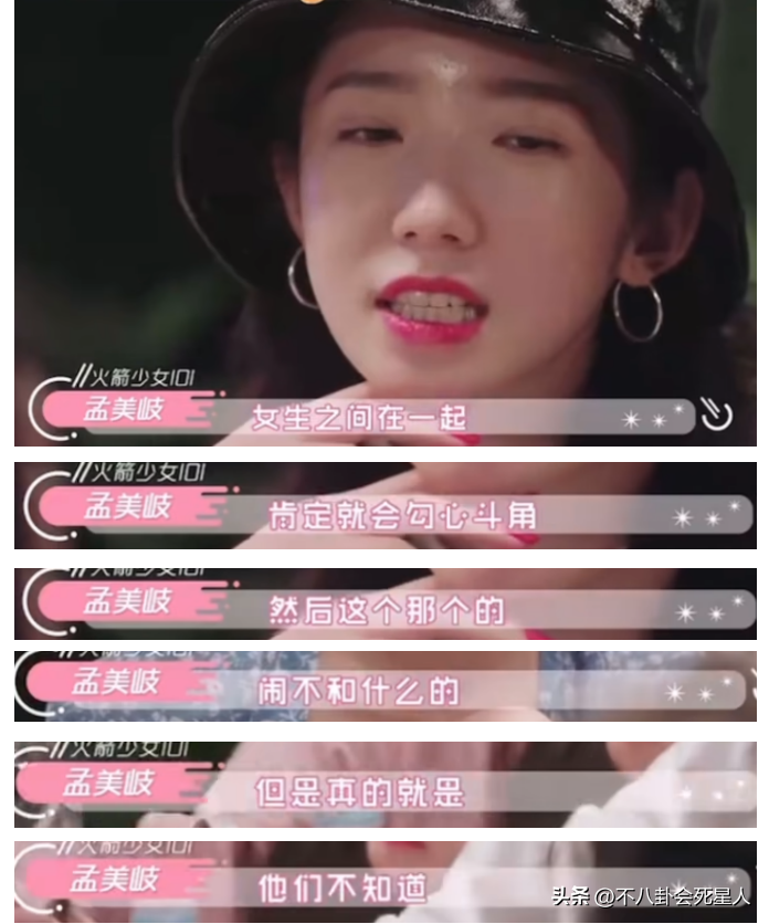 选秀出道的火箭少女,也“男味”十足,各种迷惑发言不断。队长孟美岐,对外立下”山支大哥”人设,对内定义自己所在的团是“十一个男生”。