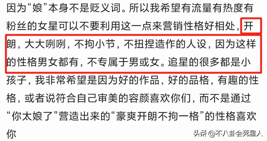 明明这种汉子人设,已经是很多年前流行的东西了,网友过了青春期都在为年少无知的自己悔不当初了,而现在的娱乐圈女星里,却还有各种各样立汉子人设的“精神男士”。