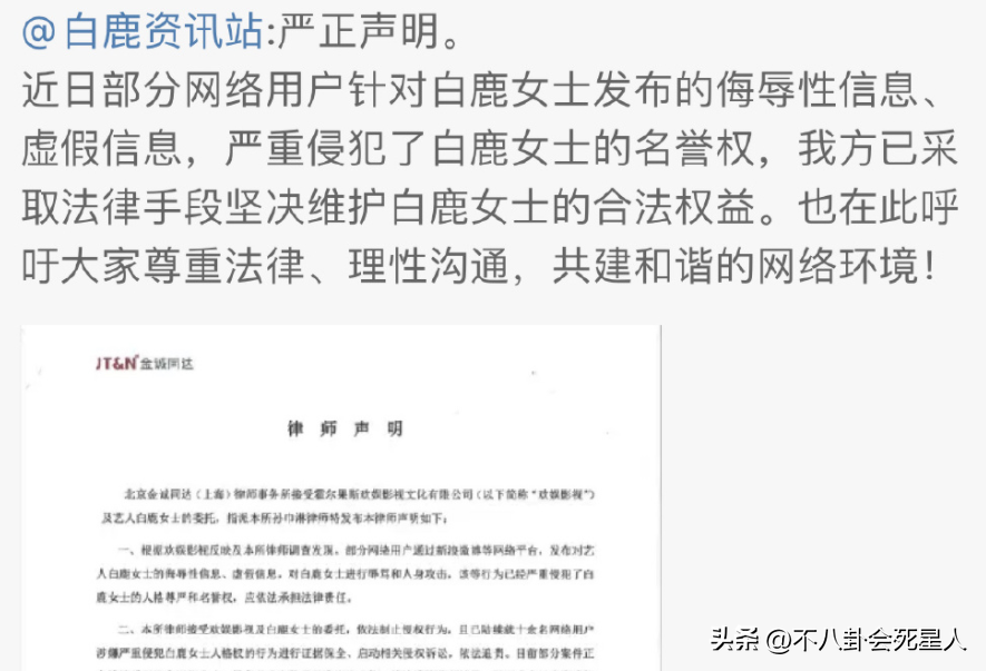 网友苦口婆心,白鹿油盐不进,直接甩出声明,将这样的网友告了。网友对白鹿的称呼也如她所愿,变成了白男士、白先生。