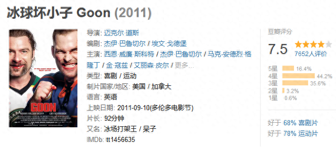 NO.8 美国《冰球坏小子》冰球,豆瓣7.4