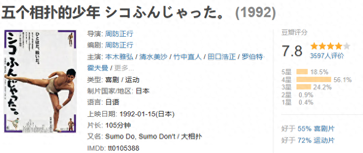 NO.7 日本《五个相扑的少年》相扑,豆瓣7.8