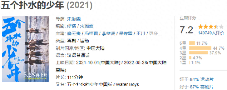 NO.9 中国《五个扑水的少年》花样游泳,豆瓣7.2