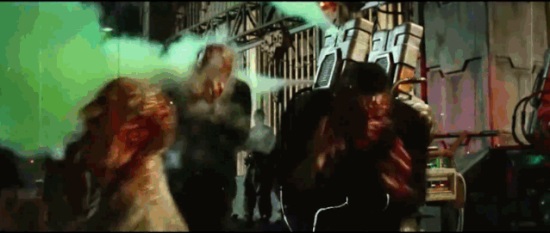 这时一个军事基地发生了动乱,毒气泄露,让人变成了僵尸,血肉模糊。