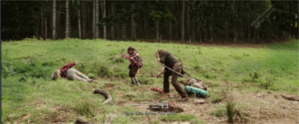 为了活命,女主和两个孩子蒙上眼睛划船过河找安全的地方生存。