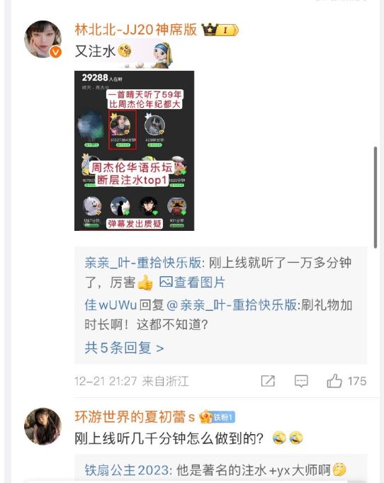 还顺便嘲周杰伦的歌曲数据注水。