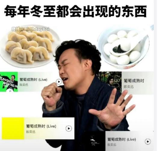 再顺便听听陈奕迅老师在《葡萄成熟时》唱的 " 差不多冬至 "。