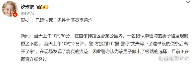 据韩媒,警察于当天上午 10 点 12 分左右接到了李善均妻子的报警电话,称 " 丈夫写完像遗书一样的便条后离开了家 ",警方根据现场燃烧痕迹,推测他做出了极端的选择,并正在调查详细的死亡原因。消防部门负责人也表示:" 他被判定死亡,没有送往医院。"