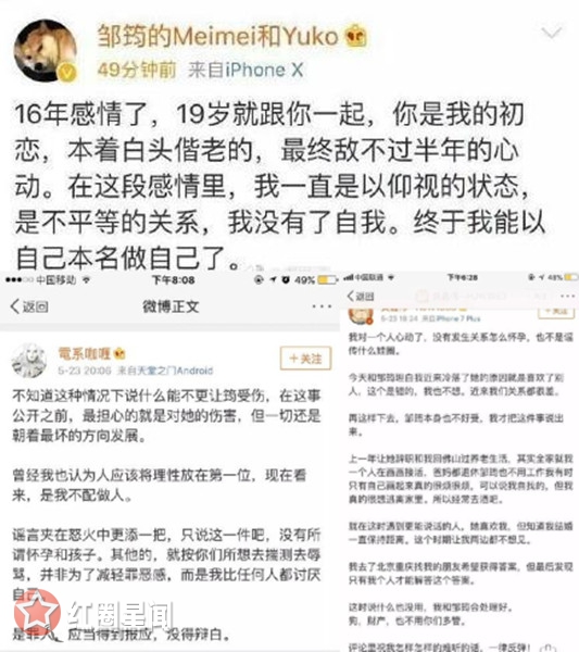 黄嘉伟杜雨薇邹筠微博截图