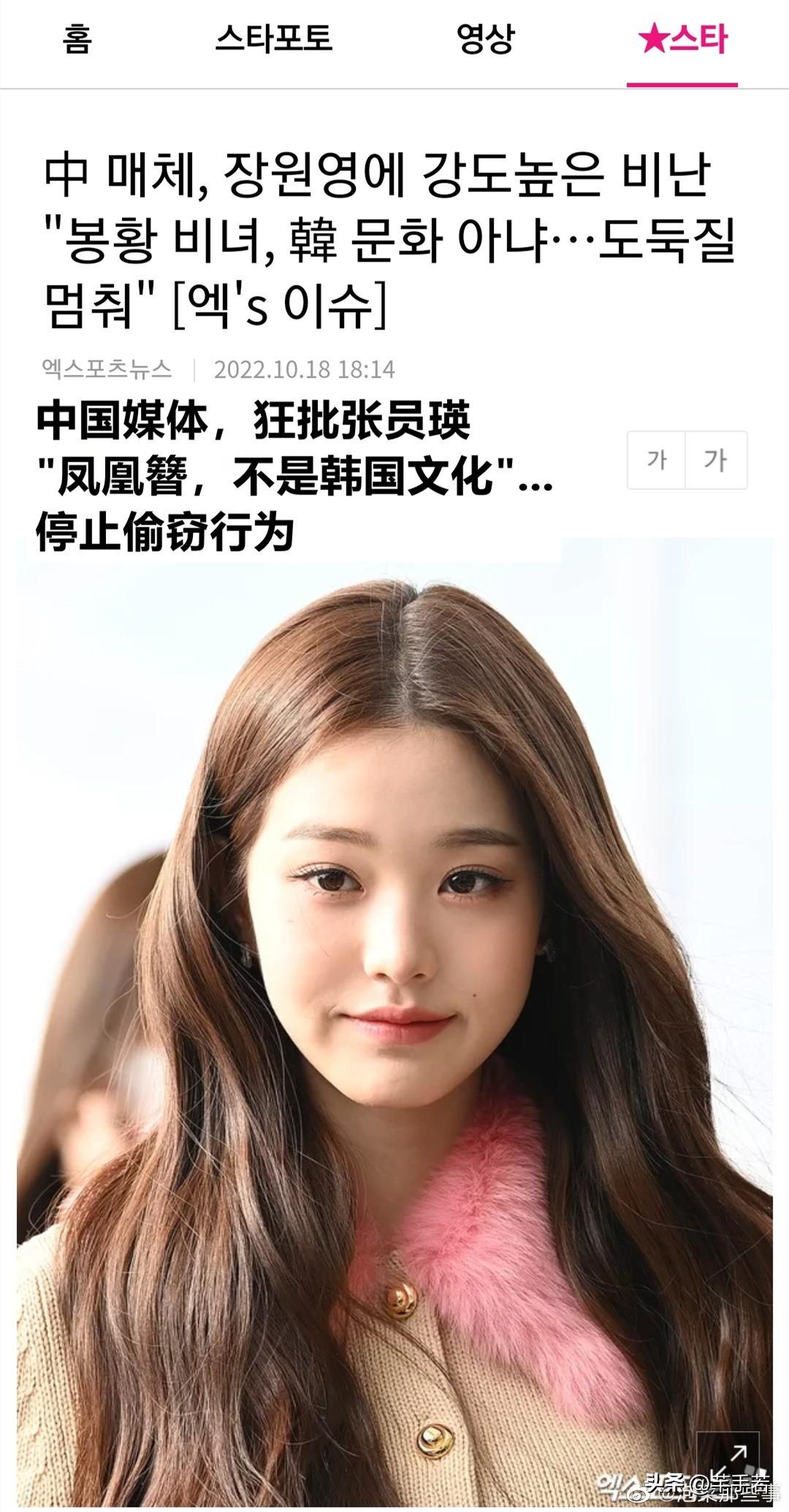 现在IVE张元英所属的娱乐公司星船不知道该怎么洗白了,于是开始狗急跳墙发布了讨好韩流市场的通告,标题是“中国媒体,狂批张元英戴的凤凰簪不是韩国文化,停止偷窃行为”,想以此来解法韩流网友对张元英的保护欲,可惜偷鸡不成蚀把米,因为张元英在韩流已经没有市场了,她的人设崩塌了。
