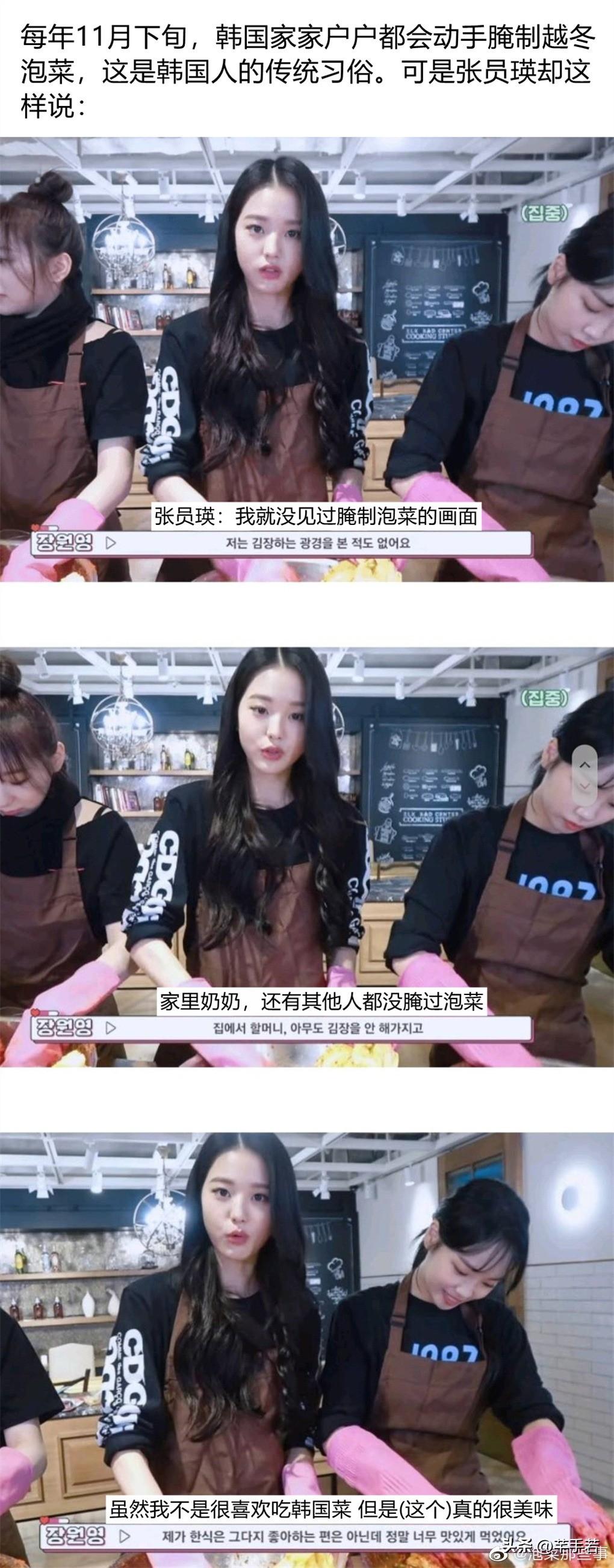 最直接的证据是张元英在韩流节目中的自爆,在每年的11月下旬,常年啃白菜帮的韩国人家家户户都会腌制越冬泡菜,这算是韩国人的传统了,结果张元英在节目中无法理解,他表示家里的奶奶和其他人都没有腌过泡菜,这其实已经很能说明问题了,只不过当时大家都没有往这方面想。