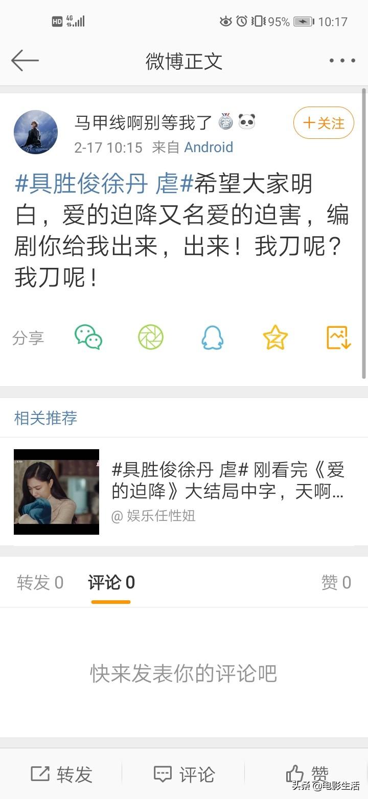 虽说具成俊以前做过诈骗的勾当,但他对徐丹是真心实意的,且徐丹也不是寻常韩剧中的恶毒女配,从头到尾都没有做过对世莉不利的事情。以至于大量观众意难平,称要给编剧寄刀片。