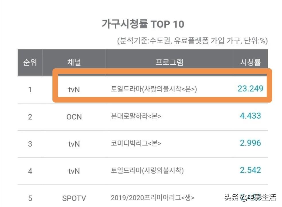 2020年2月16日晚,火了整整3个月的《爱的迫降》 迎来大结局。AGB首尔瞬间收视率破23%,全国收视率破21%,创TVN历代收视率纪录。与此同时,本剧的综合收视率也强势进入「韩国有线电视台历史前五」,真正做到口碑收视双丰收。