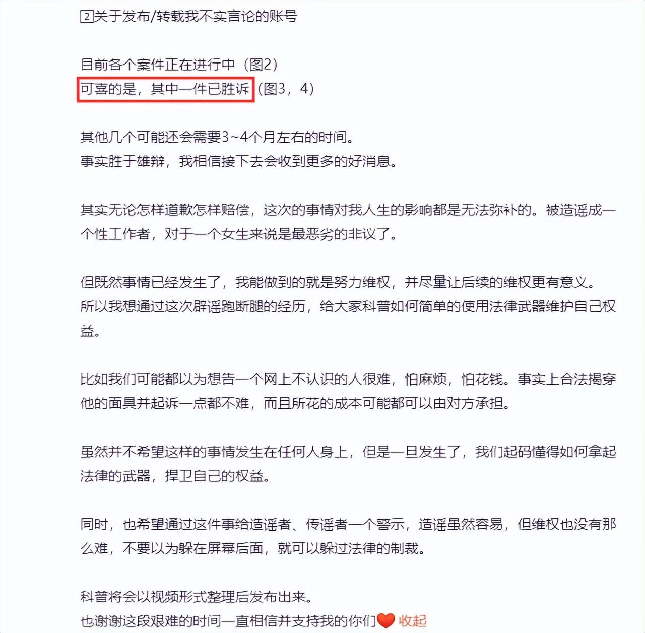 除了起诉周姓假冒者之外,胡湾还通过互联网法院告了大量造谣者、传谣者,立案一栏清晰显示有24条,其中已经胜诉一件了,其他的仍在进行中。对于网络维权难度大、周期长,胡湾坚信“事实胜于雄辩,我相信接下去会收到更多的好消息,可能还会需要3~4个月的时间”。