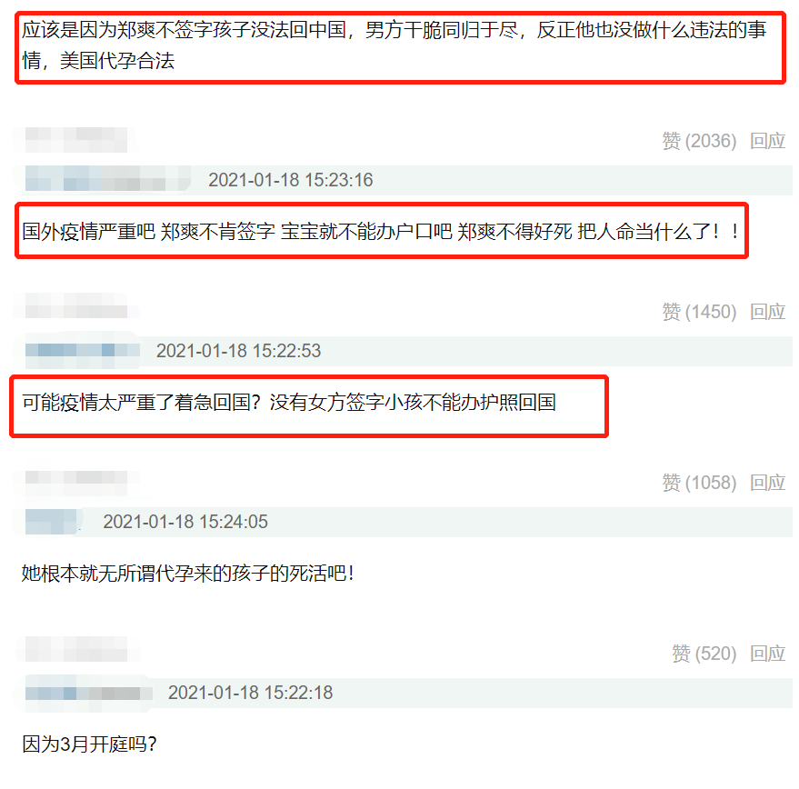不过网友对于张恒突然爆料也感到有些迷惑,孩子已经一岁多了,为什么现在才爆料呢?有网友分析是因为张恒一直想带着孩子回国,但郑爽迟迟不肯配合,在那边滞留了一年多,现在又恰逢要过年了,张恒只能鱼死网破爆料,逼迫郑爽配合。