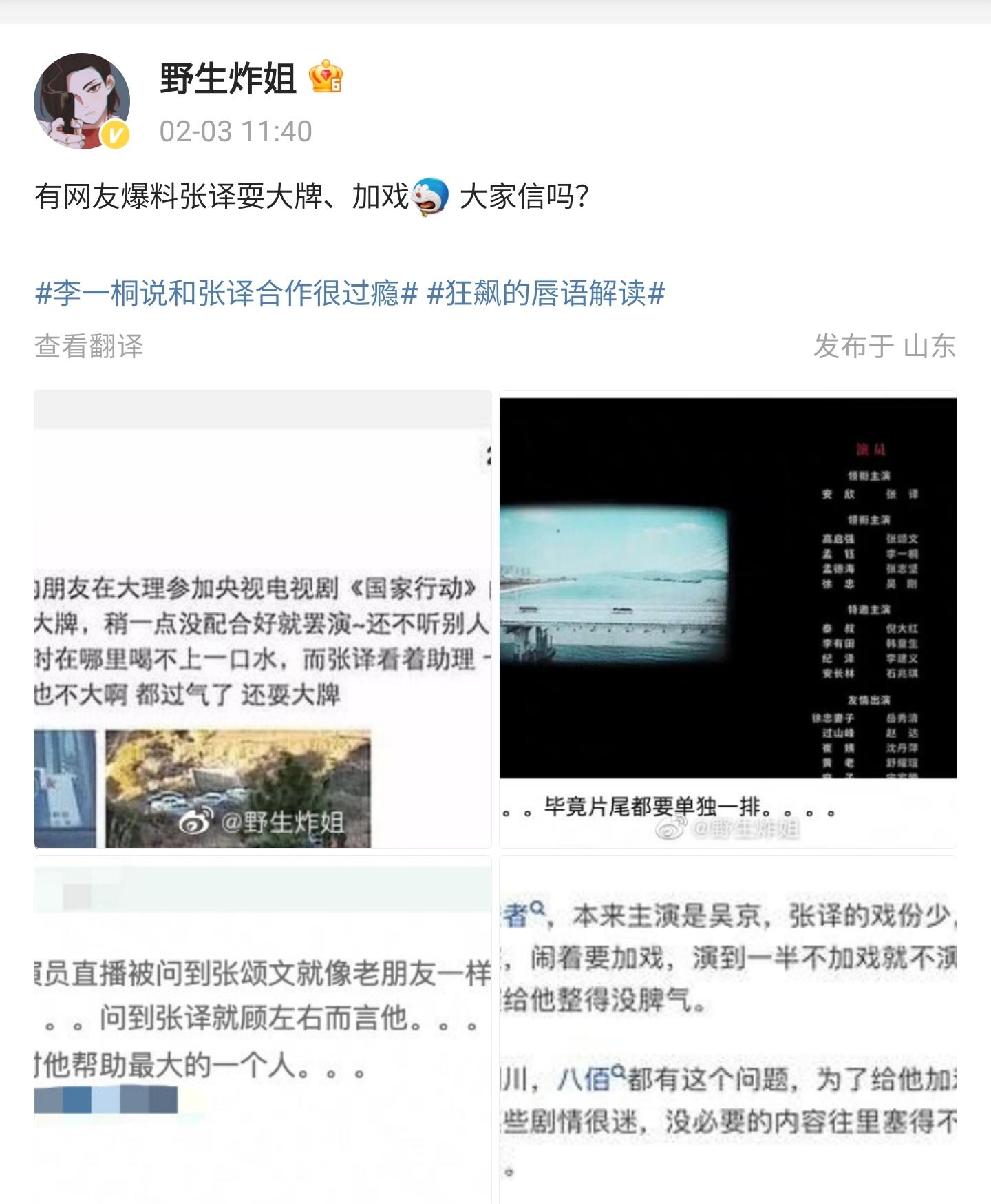 无独有偶,除了这个探班网友的爆料了,一些娱乐博主也提到了张译耍大牌的事情,但不是在《狂飙》剧组,而是之前拍摄《国家行动》的时候,当时是群众演员说张译脾气不好,稍微有点没配合好就罢工,甚至不听别人解释,那时候张译的名气还不大,所以对于他这样的行为,群众演员很不理解。
