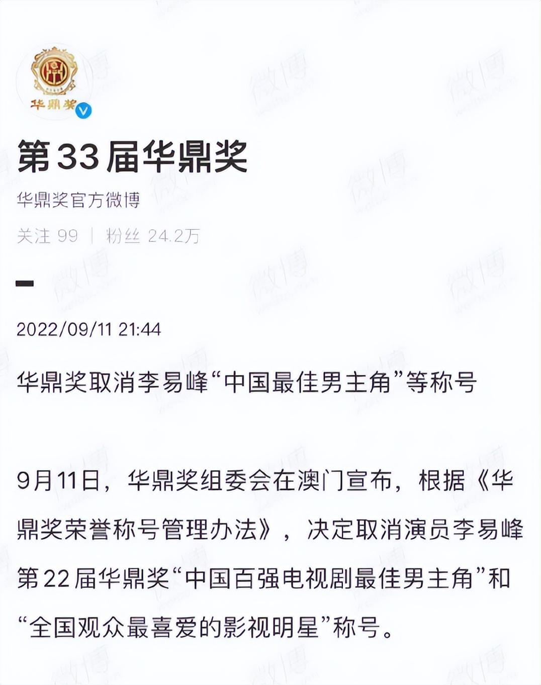 继各大合作商宣布解除合约后,其线下店铺还连夜撤掉了李易峰的宣传海报。除此之外,李易峰此前所获华鼎奖最佳男主角称号也被取消,至于其影视作品则被除名,音乐作品则被下架。仅一夜之间,所有的付出和努力都付诸东流。