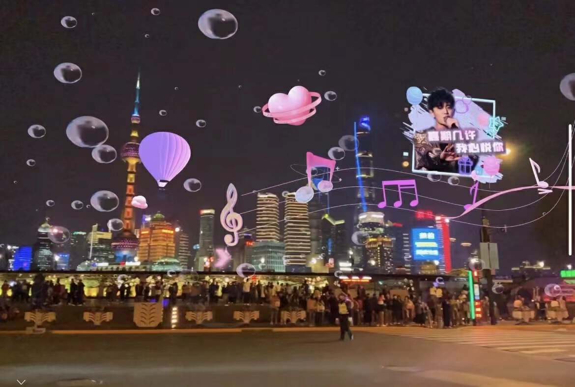 任嘉伦生日前一晚,在上海外滩附近,一场梦幻的生日派对已然开启。在地标马克的精心策划下,昔日熙熙攘攘的街头瞬间化身为整一个充满未来感的元宇宙,借助于AR技术,各种不同造型的“国超哥哥”被投放于现实场景之中,虚拟与现实的交织让人仿佛沉溺于一场科幻美梦之中。