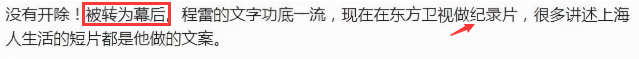 因为这件事情影响恶劣,程雷被台里“处理”了。