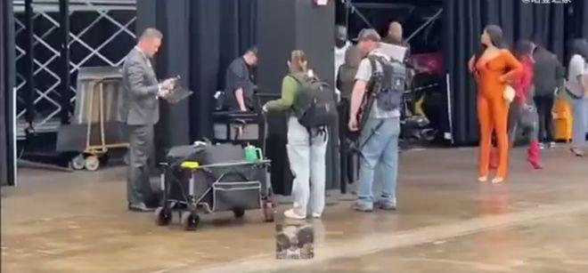 比赛结束后,太阳队后卫比尔的妻子在球员通道等候自己的老公,结果没想到,哈登走了过来。比尔妻子穿着一身橙色的衣服,打扮十分性感。