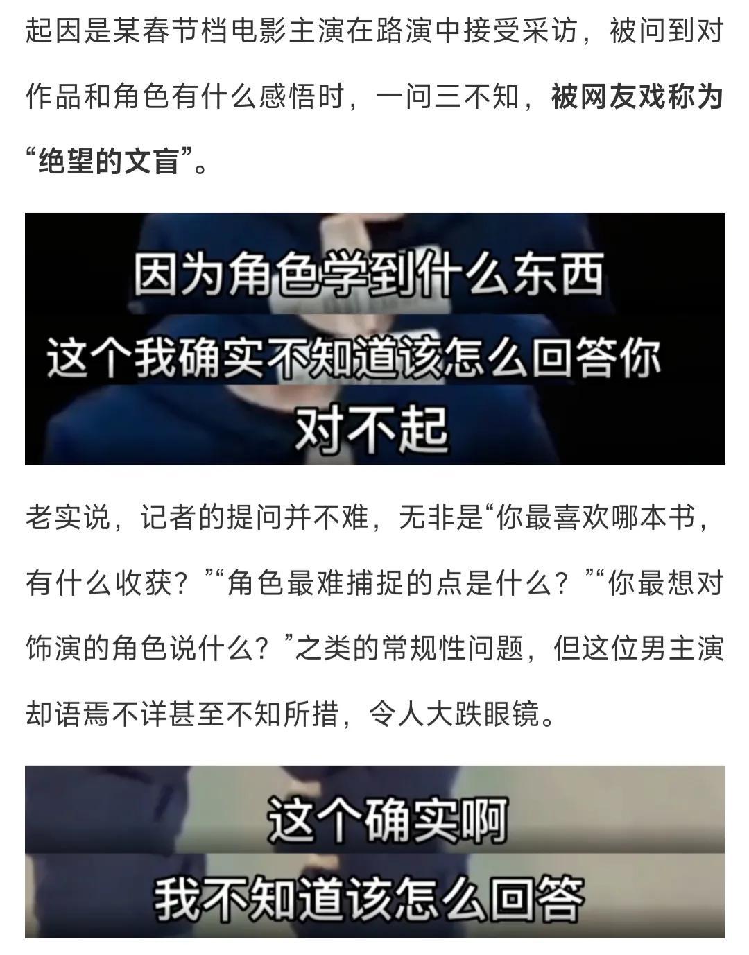央视网谈“绝望的文盲”,其中列举了王一博、赵露思、刘浩存等人的采访,不是支支吾吾就是答非所问。对于角色的理解亦或是其他自己都没有渗透,就这样把人物给呈现出来了。