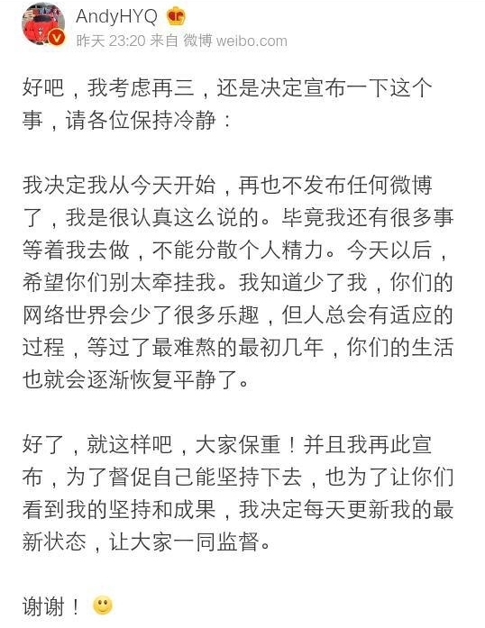 娱乐圈第一好人黄毅清宣布不再发任何微博了?一纸诉状就怂了?