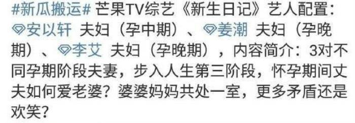 近日,有细心的网友发现,在芒果TV的新综艺《新生日记》参加的节目嘉宾中出现了“姜潮夫妇”的身影,网友们看到后也纷纷表示疑惑,姜潮到底什么时候结的婚?
