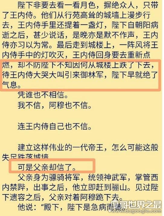 在到后来朝阳公主死后,身体也是渐渐垮掉。也因为过度的思念,整天郁郁寡欢。某一天,李承鄞一个人走上墙头之上,这里便是当年小枫跳下去的地方。他纵身一跃也从城楼上跳下去了,没错,他自杀了!堂堂一代帝王最后以这样的方式结束了自己的生命,于是便留下“小枫,这一次,我也要忘了你……”,实在是太虐了啊!
