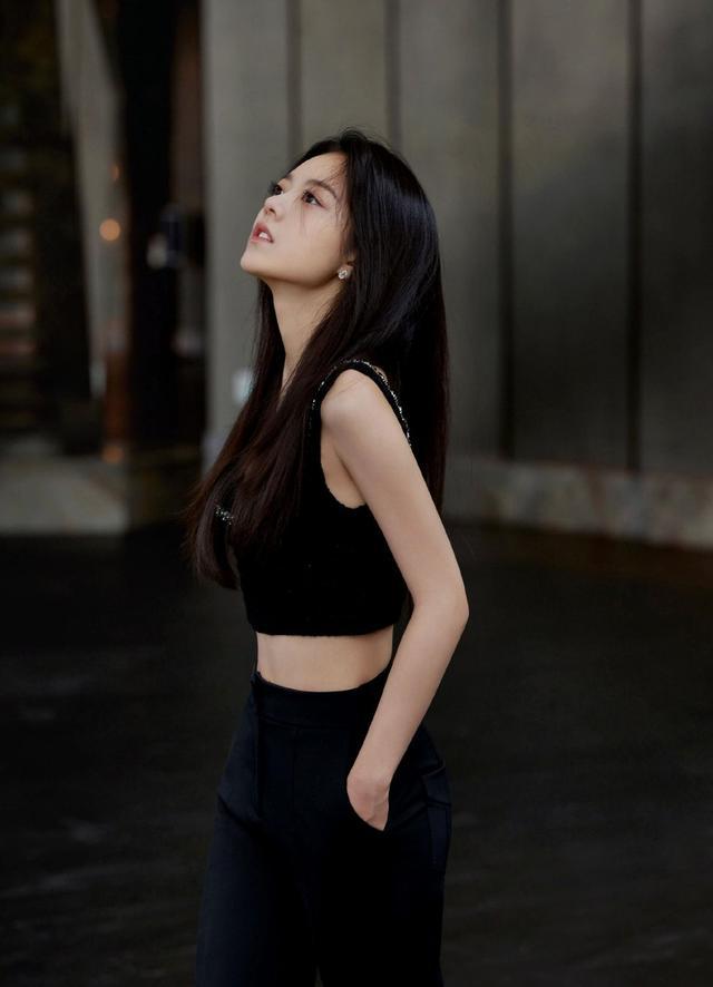 赵今麦纯黑造型化身冷面御女 穿运动背心展现腰肢
