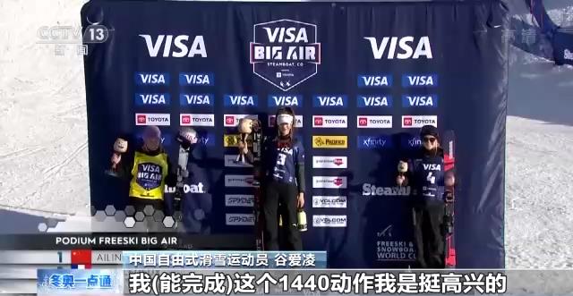 中国自由式滑雪运动员 谷爱凌:我(能完成)这个1440动作我是挺高兴的,因为我是刚刚学会的,我在奥地利训练的时候是(2021年)11月份学会的,所以能从三个礼拜前学会到现在比赛中(完成),我也是非常高兴。这个是历史上第一次有女子在比赛中完成这个高难度动作。