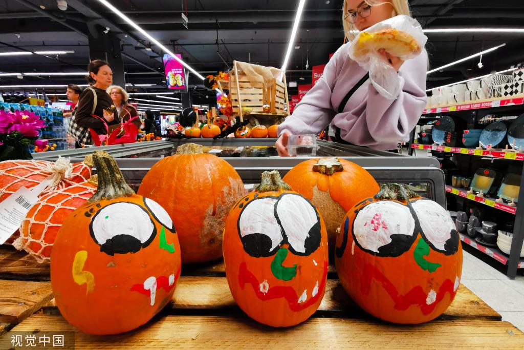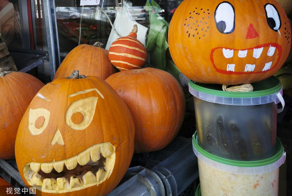 10月31日是万圣节前夕,家家户户除了会在当天准备很多南瓜食品及糖果来庆祝之外,更会在当日扮鬼上街游行。那一天,雕刻成鬼脸的南瓜灯随处可见。视觉中国