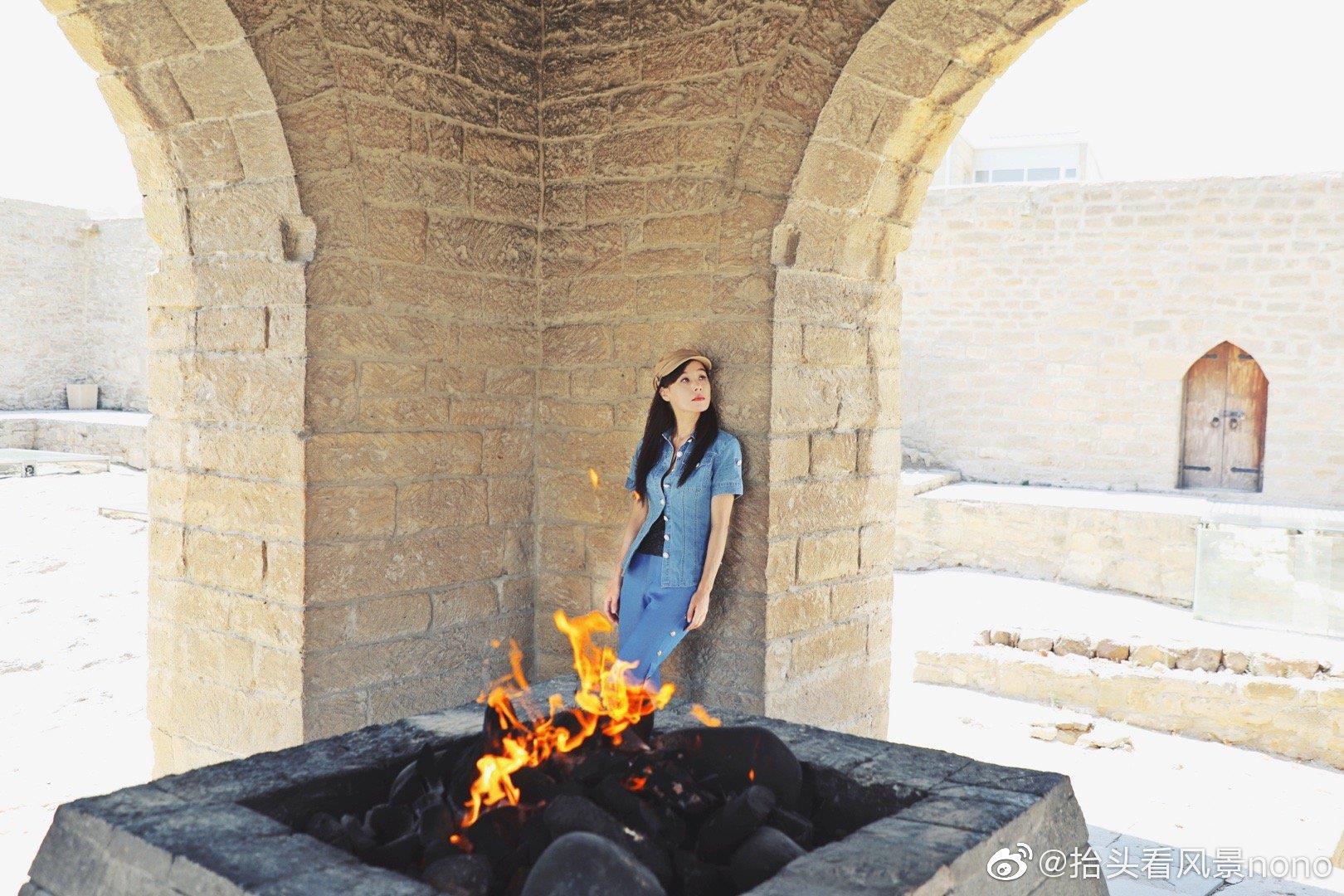 还记得《倚天屠龙记》里的圣火令吗?源自当时波斯的“拜火 教”,阿塞拜疆也曾是波斯帝国的一部分。阿塞拜疆是地球上为数不多依然保留火祭和古老拜火教元素的地方。在这里,石油流出地面,天然气喷出烈焰火炬,都令世界各地的火焰崇拜者着迷。在阿塞拜疆首都巴库,有这样一座“拜火寺”(Atashgah Temple),因处于天然气田上,所以曾有相当长的一段时间里,这里出现大地自燃的现象。如今这里日夜不熄的火焰已经是从别处地下引来的天然气了。尽管如此,这里仍体现着阿塞拜疆人对火的崇拜。如果想看真正从未熄灭火焰,就在巴库东北25公里处的雅纳尔达格火山,这里是名副其实的火焰山,山下是一片因天然气不断燃烧的大地(图5),也是到阿塞拜疆不可错过的地方。