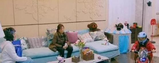 客厅的面积十分宽敞,邓莎的儿子大麟子还能在家里骑摩托车,相当豪气。