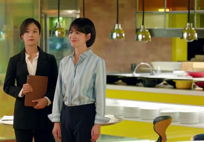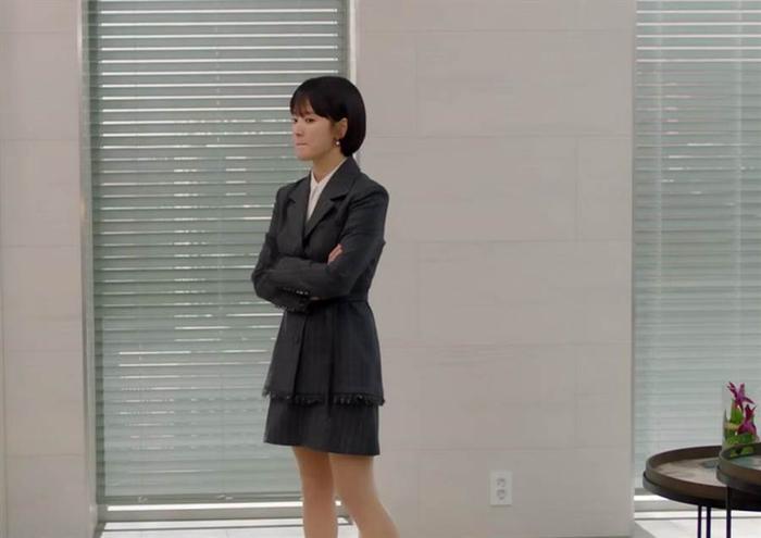 宋慧乔为戏将头发剪短,新发型让五官更加精致立体,干练俐落中又不失可爱气质,搭配各种职场穿搭,难怪金振赫(朴宝剑)总是夸车秀贤(宋慧乔)又帅又美丽