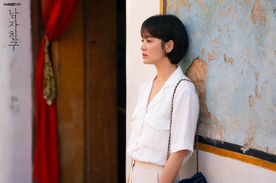 宋慧乔在韩剧《男朋友》中饰演酒店代表「车秀贤」,剧中一头短发刘海,搭配各种职场穿搭,不仅衬托出女强人的干练气势,又不失知性优雅的女人味